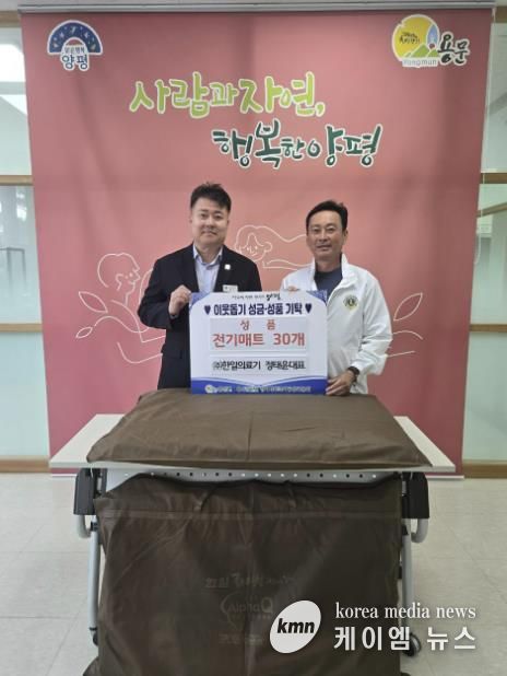 (케이엠뉴스) 양평군 용문면은 ㈜한일의료기가 관내 취약계층을 위해 600만 원 상당의 전기매트 30개를 기탁했다고 밝혔다.