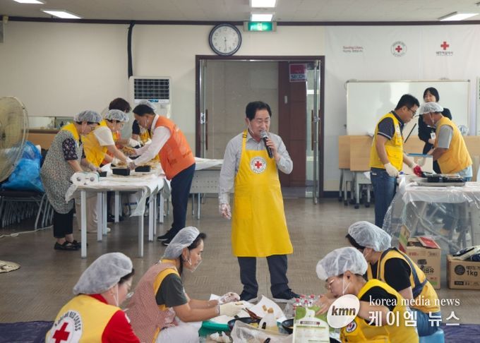 이번 행사는 관내 저소득 및 취약계층 405가구를 대상으로 따뜻한 추석 명절을 지원하고자 마련됐으며, 약 60명의 적십자 봉사원이 참여해 송편, 전, 물김치 등 정성 가득한 음식을 직접 준비했다.