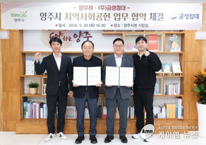 (케이엠뉴스) 양주시가 지난 30일 시청 시장실에서 ㈜금성침대와 지역사회공헌 업무 협약을 체결했다.
