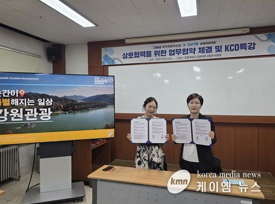 (케이엠뉴스) 강원관광재단 글로벌마케팅실은 10월 1일 강원대학교 독어독문학전공과 글로벌 관광 전문 인재 양성을 위한 업무협약(MOU)을 체결했다.