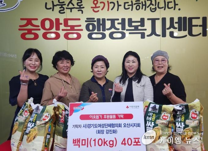 (케이엠뉴스) 사단법인 경기도여성단체협의회 오산시지회는 지난 10월 1일, 추석 명절을 앞두고 지역 내 어려운 이웃을 위해 백미(10kg) 5포씩을 오산시 관내 8개 동 행정복지센터에 각각 기탁했다.