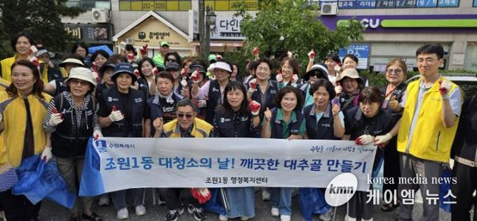 (케이엠뉴스) 수원시 장안구 조원1동은 추석과 APEC을 맞아 추진 중인 국민 참여 운동인 「대한민국 새단장」 캠페인의 일환으로 추석맞이 대청소를 실시했다.