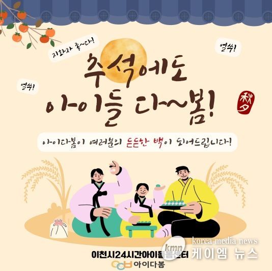 (케이엠뉴스) 이천시는 추석 연휴 기간에도 이천시 24시간 아이돌봄센터인 ‘아이다봄’을 365일 24시간 정상 운영해 연휴 중 발생할 수 있는 돌봄 공백을 최소화한다고 밝혔다.