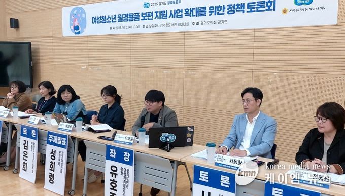 (케이엠뉴스) 유호준 경기도의회 여성가족평생교육위원회 위원장(더불어민주당, 남양주6)이 좌장을 맡은 '여성청소년 월경용품 보편 지원 사업 확대를 위한 토론회'가 10월 2일 남양주시 정약용도서관 세미나실 3층에서 개최됐다. 본 토론회는 경기도와 경기도의회가 공동으로 주최하는 ‘2025 경기도 정책토론회’의 일환으로 개최됐다.