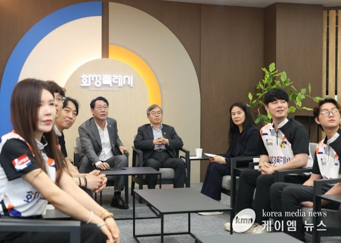 (케이엠뉴스) 화성특례시는 2일 시청 중앙회의실에서 ‘2025 동트는 동해컵 프로볼링대회’에서 개인전 및 단체전 우승을 차지한 팀MK글로리아 프로볼링팀을 초청해 격려했다.
