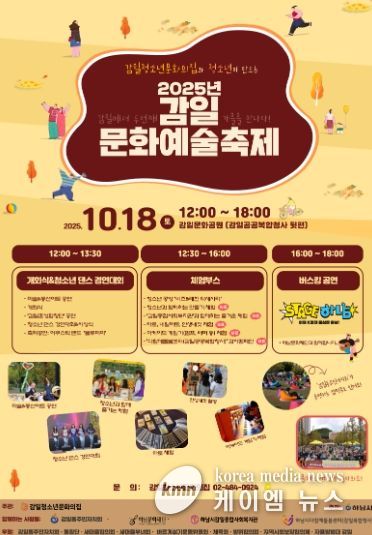 (케이엠뉴스) 하남시 감일청소년문화의집은 오는 10월 18일 오후 12시부터 18시까지 감일문화공원(감일공공복합청사 뒷편)에서 '제2회 감일문화예술축제'를 개최한다.