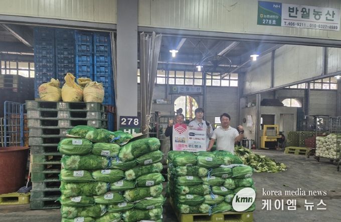 (케이엠뉴스) 안산시 농수산물도매시장은 지난 2일 도매시장 내 중도매인인 반월농산(대표 노영현)으로부터 추석 명절을 맞이해 배추 1,800kg을 기탁받았다고 3일 밝혔다.
