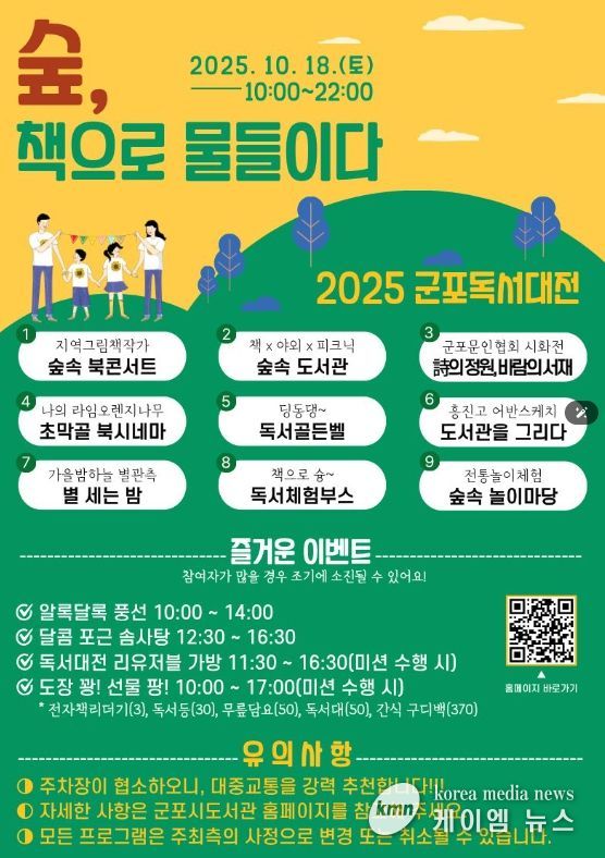 하은호 군포시장은 “올해 독서의 달 행사는 책 읽는 즐거움을 넘어 예술과 체험이 어우러진 복합 문화축제로 시민들과 함께 했다”며 “오는 10월 17~18일 군포올래 행복축제 기간에 초막골 생태공원에서 열리는 군포독서대전에서도 시민들이 책과 가까워지고 다양한 독서문화 프로그램을 즐길 수 있도록 풍성한 행사를 준비하고 있다”며 많은 관심과 참여를 당부했다.