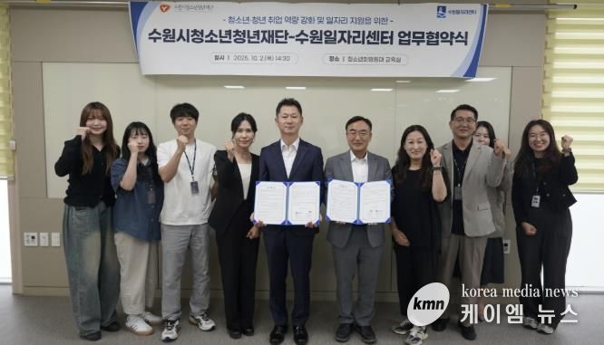 (케이엠뉴스) 수원시청소년청년재단과 수원일자리센터는 10월 2일, 청소년청년의 취업 역량 강화와 일자리 지원을 위한 업무협약(MOU)을 체결했다.