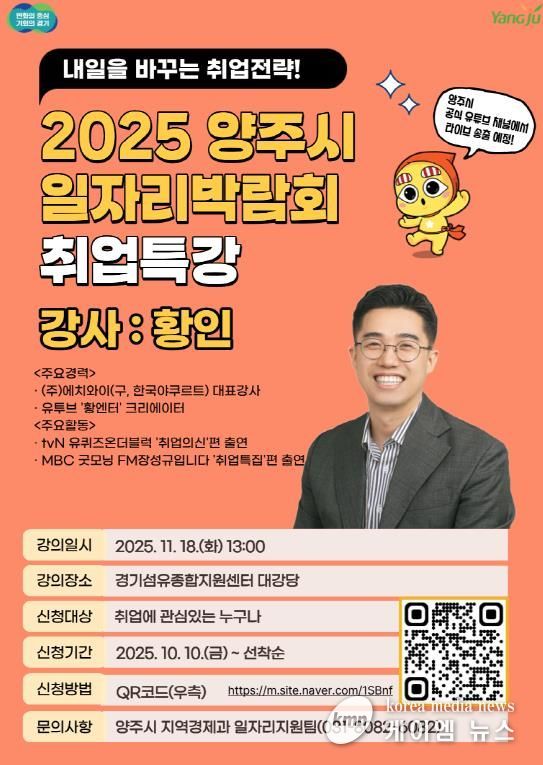 행사 당일 강연은 양주시 공식 유튜브 채널을 통해 생중계되며, 참가 희망자는 10일부터 QR코드를 통해 사전 접수 후 참여할 수 있다.
