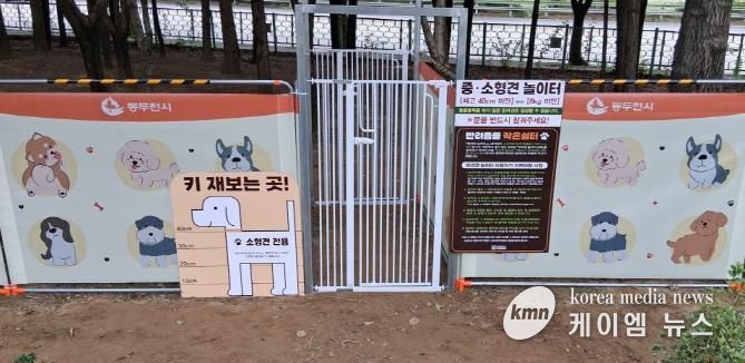 (케이엠뉴스) 동두천시는 반려견과 시민이 함께 어울릴 수 있는 반려동물 문화공간을 조성하기 위해 강변로 156(강변근린공원 내)에 반려견 간이놀이터(이동식 울타리)를 설치하고 시범운영에 들어갔다고 밝혔다.