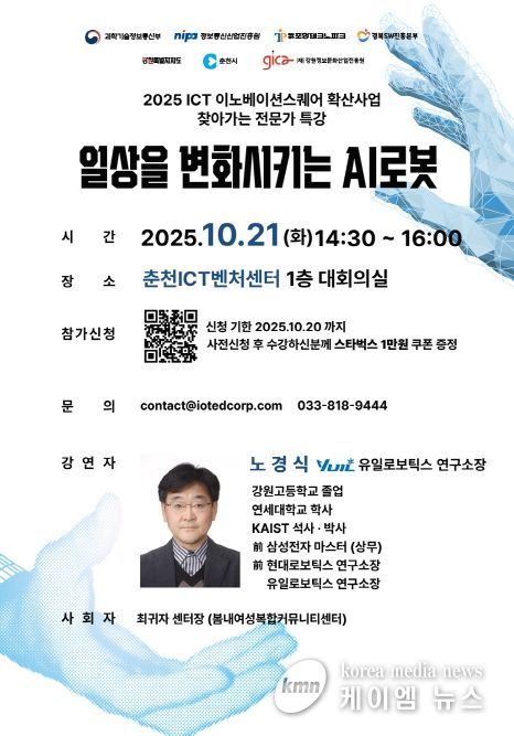 (케이엠뉴스) 과학기술정보통신부와 정보통신산업진흥원이 주최하고 강원정보문화산업진흥원이 운영하는 '2025년 ICT 이노베이션스퀘어 확산사업'의 일환으로 추진 중인 ‘찾아가는 전문가 특강’이 지역 현장의 디지털 전환을 견인하고 있다.