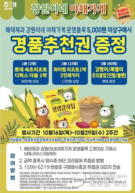 출시 기념으로 매대 내 상품을 5,000원 이상 구매한 고객에게 경품 응모권을 제공하며, 추첨을 통해 도내 리조트 숙박권과 강원이‧특별이 한정판 굿즈를 증정한다.
