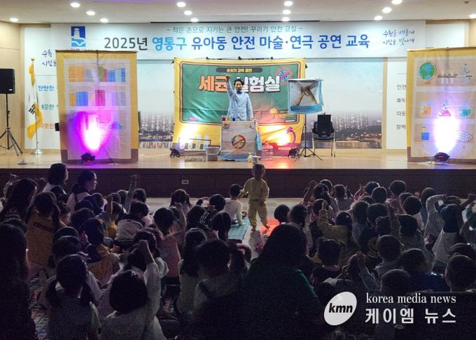 (케이엠뉴스) 수원시 영통구는 2025. 10. 13. 영통구청 대회의실에서 관내 유아를 대상으로 안전한 위생 습관을 형성하기 위한 ‘찰리박사의 세균실험실’ 체험형 안전마술·연극 공연 교육을 실시했다.