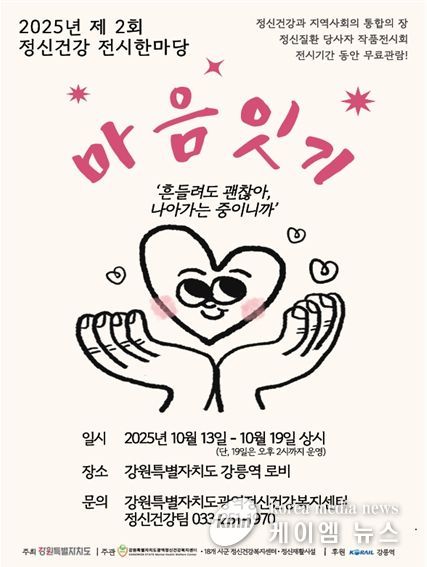 (케이엠뉴스) 강원특별자치도(도지사 김진태)와 강원특별자치도광역정신건강복지센터는 10월 13일 오전 11시, 강릉역 1층 로비에서 '제2회 정신건강 전시한마당' 개막식을 열고 전시의 시작을 알렸다.