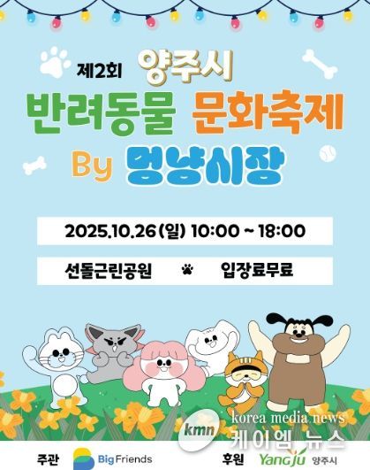 (케이엠뉴스) ㈜빅프렌즈가 주관하는 ‘2025년 양주시 반려동물 문화축제’가 오는 26일 옥정동 선돌근린공원에서 열린다.