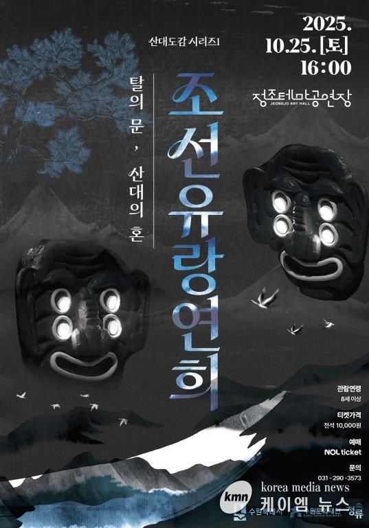 (케이엠뉴스) 수원문화재단은 오는 25일 오후 4시에 정조테마공연장에서 기획공연 ‘조선유랑연희: 탈의 문, 산대의 혼’을 초연한다.