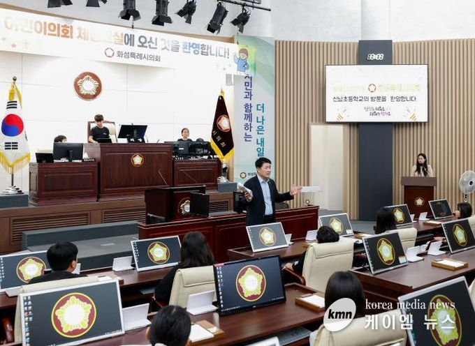 (케이엠뉴스) 화성특례시의회는 13일, 남양읍에 위치한 신남초등학교 학생들을 대상으로 ‘어린이의회 체험 교실’을 운영했다.