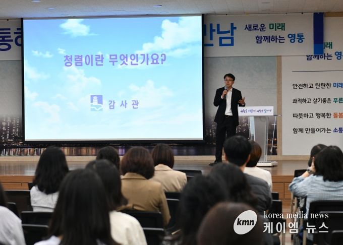 (케이엠뉴스) 수원시 영통구는 지난 14일 구청 대회의실에서 공직자들의 청렴 의식을 높이고 행정 신뢰성을 향상시키기 위하여 ‘2025 하반기 영통구 공직자 청렴교육’을 개최했다.