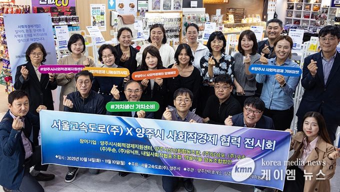 (케이엠뉴스) 양주시와 서울고속도로㈜가 지난 14일 오후 3시, 양주휴게소 2층 전시공간에서 ‘서울고속도로(주)×양주시 사회적경제 협력 전시회’ 개막 기념식을 개최했다.