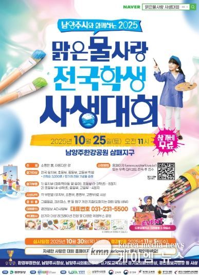 (케이엠뉴스) 남양주시는 오는 25일 오전 11시 남양주한강공원 삼패지구에서 '2025 맑은물사랑 전국학생 사생대회'를 개최한다고 밝혔다.