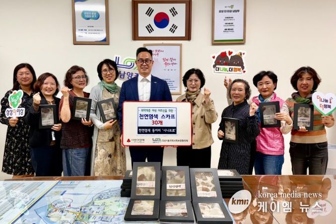 (케이엠뉴스) 남양주시는 14일 천연염색 동아리 ‘시나브로’가 천연염색 체험을 통해 직접 제작한 스카프 30개를 다산1동 지역사회보장협의체에 기탁해 나눔의 가치를 실천했다고 밝혔다.