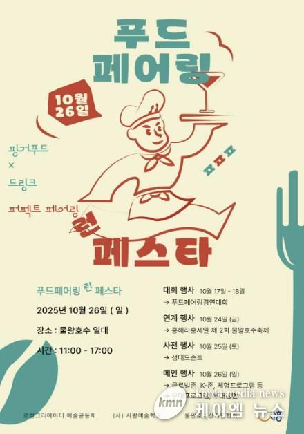 한편, 관련 부대행사로 오는 10월 17~18일 은계1어울림센터에서 ‘2025 세계푸드페어링대회’가 열리며, 수상자 3인에게는 시흥시장상 등이 수여된다. 참가비는 무료이며, 10월 16일까지 오후 12시까지 전자우편을 통해 신청할 수 있다.