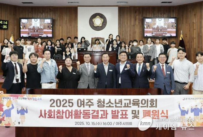 (케이엠뉴스) 경기도여주교육지원청은 10월 15일, 여주시의회 본회의장에서 '2025 여주 청소년교육의회 발표회 및 폐원식'을 개최했다.