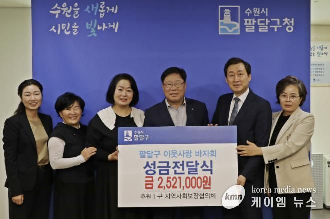 (케이엠뉴스) 수원시 팔달구와 구 지역사회보장협의체는 지난 15일 구청장실에서 ‘팔달구 이웃사랑 바자회’ 성금 전달식을 가졌다.