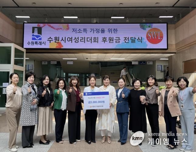 (케이엠뉴스) 수원시여성리더회가 16일 수원시청 본관 1층에서 저소득가정을 위한 후원금 300만 원을 수원시에 전달했다. 후원금은 형편이 어려운 가정에 지원할 예정이다.