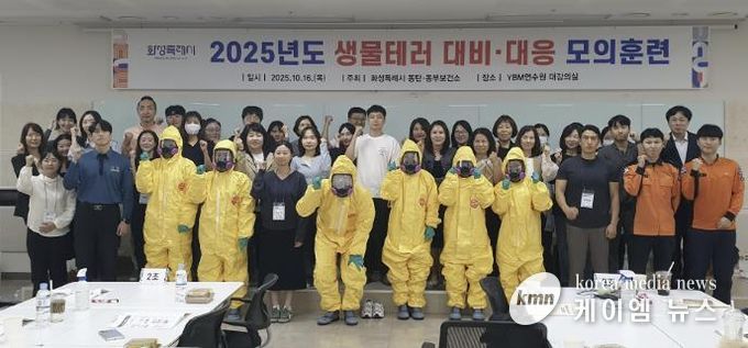 (케이엠뉴스) 화성시가 16일 YBM연수원에서 ‘2025년 생물테러 대비·대응 모의훈련’을 실시했다.