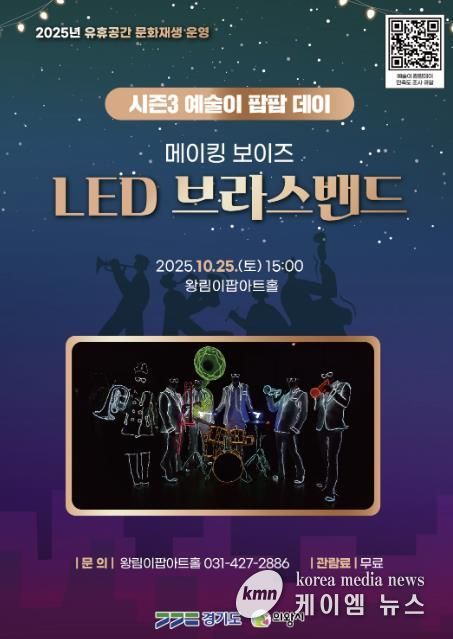 (케이엠뉴스) 의왕시는 오는 10월 25일 오후 3시, 왕림이팝아트홀(의왕시 왕곡로 74)에서 금관악기 앙상블과 첨단 엘이디(LED) 조명 기술을 결합한 융복합 공연‘엘이디(LED) 브라스밴드’를 선보인다고 밝혔다.