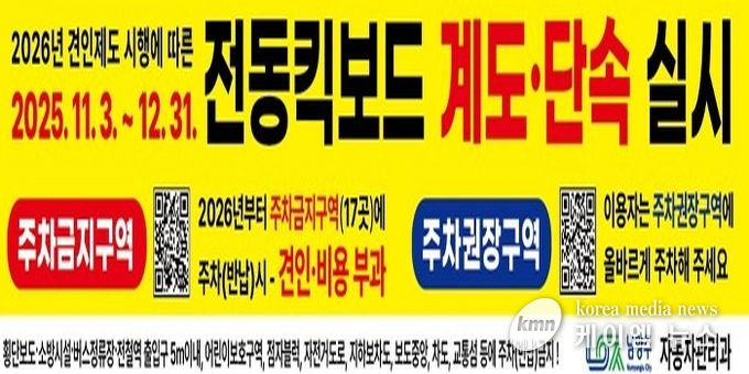 시 관계자는 “이번 계도단속은 처벌이 목적이 아닌 올바른 이용문화 정착을 위한 사전 준비단계”라며 “2026년 견인제도가 안정적으로 시행될 수 있도록 지속적인 계도와 홍보를 추진해 나가겠다”고 말했다.