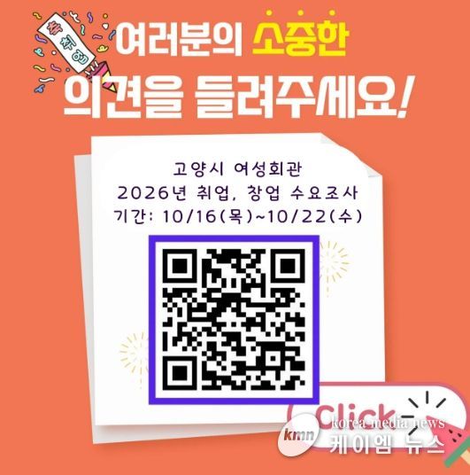 (케이엠뉴스) 고양특례시 여성회관은 시민의 직무 역량 강화와 성공적인 취·창업 연계를 지원하기 위해 ‘2026년 취·창업 특강 수요조사’를 실시한다.