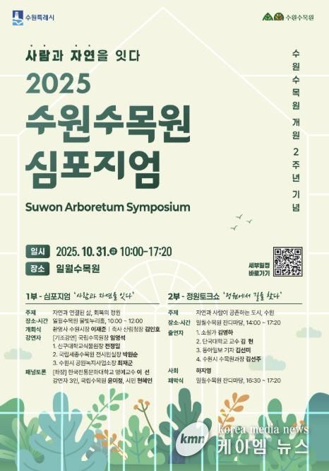 (케이엠뉴스) 수원수목원은 10월 31일 오전 10시 일월수목원에서 ‘2025 수원수목원 심포지엄 '사람과 자연을 잇다'’를 연다.