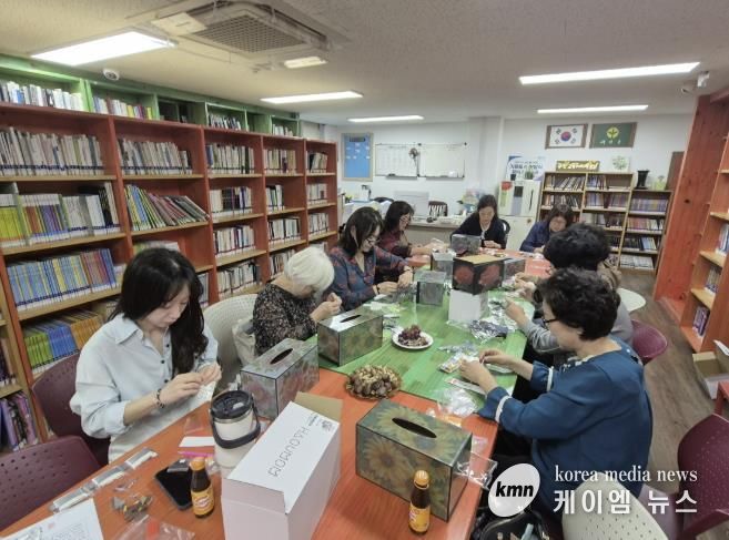 (케이엠뉴스) 수원시 팔달구 우만2동 새마을문고는 지난 16일 문고 프로그램 일환으로 비즈 티슈케이스 만들기를 진행했다.