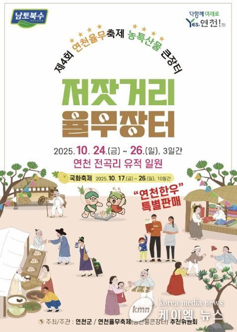 (케이엠뉴스) 연천군은 지역 대표 특산물인 율무를 주제로 한 제4회 연천율무축제(농특산물 큰장터)’를 오는 10월 24일부터 26일까지 3일간 연천전곡리유적(연천군 전곡읍 양연로 1510) 일원에서 개최한다고 밝혔다.