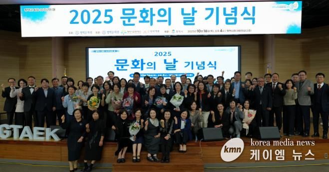 (케이엠뉴스) ‘2025 문화의 날 기념식’을 10월 16일 오후 4시, 평택시청 대회의실에서 성황리에 개최했다. 이번 행사는 평택문화원이 주최하고, 평택문화원·평택시문화재단·(사)평택예총이 공동 주관했으며, 평택시가 후원했다.
