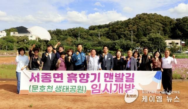 (케이엠뉴스) 양평군 서종면은 지난 17일 오후 1시, 서종면 문호리 968 일대 문호천 생태공원에서 ‘서종면 흙향기 맨발길’ 임시 운영을 기념하는 걷기 행사를 개최했다.