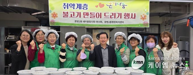 (케이엠뉴스) 광명시 광명2동 새마을부녀회는 지난 20일 광명2동 행정복지센터에서 ‘온기 나눔 사랑의 불고기’ 행사를 열었다.