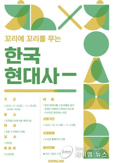 (케이엠뉴스) 동두천시 도서문화사업소 오르빛도서관은 초등학생을 대상으로 한국 현대사를 쉽고 흥미롭게 배울 수 있는 ‘꼬리에 꼬리를 무는 한국 현대사’ 프로그램을 운영한다고 21일 밝혔다.
