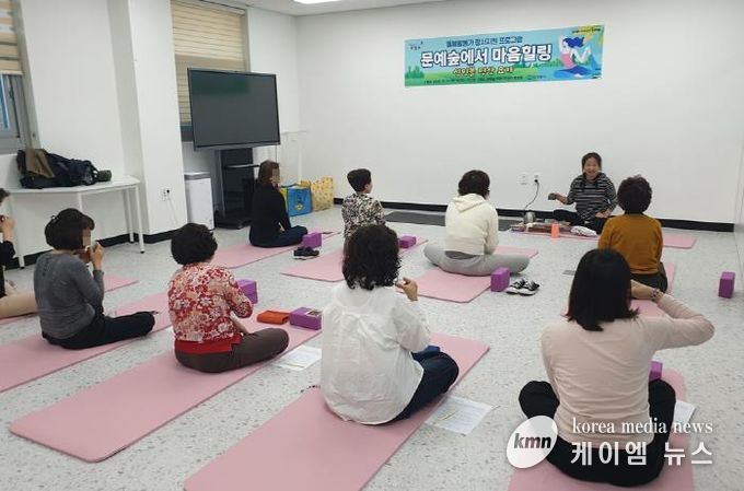 (케이엠뉴스) 의정부시는 10월 21일 문예숲 커뮤니티센터 흥선점에서 돌봄종사자들의 정서적 회복과 심신 건강을 위해 ‘싱잉볼 명상 요가’ 프로그램을 운영했다.