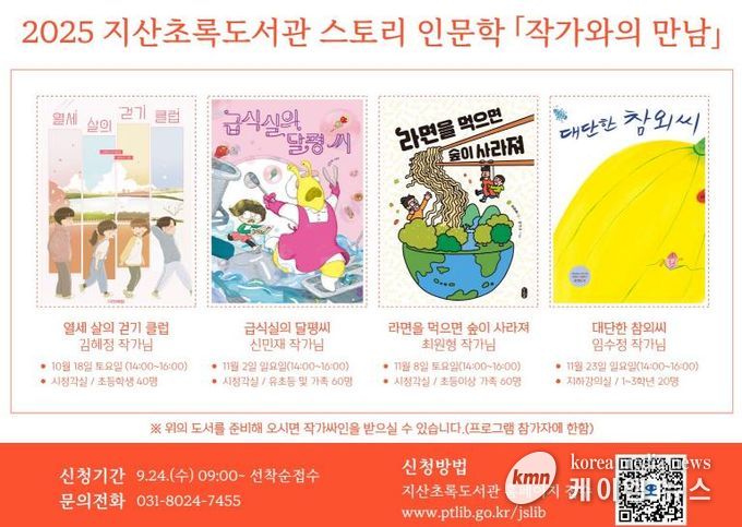 이번 프로그램은 전 세대가 함께 즐길 수 있는 독서 인문학의 장으로, 프로그램 관련 문의는 지산초록도서관(031-8024-7455)으로 가능하다. (사전접수 마감) 도서관 관계자는 “지역 어린이들이 작가와의 만남을 통해 책의 세계를 한층 깊이 느끼고 창의적인 영감을 얻는 계기가 되길 바란다”라고 전했다.