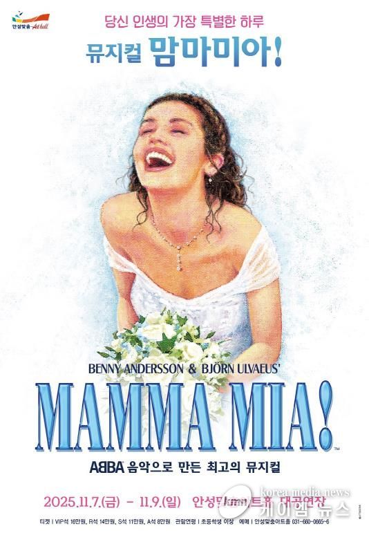 (케이엠뉴스) 안성맞춤아트홀은 오는 11월 7일부터 9일까지 대공연장에서 세계적인 히트 뮤지컬 '맘마미아!'를 무대에 올린다. 세대를 초월한 명곡과 유쾌한 스토리로 사랑받아온 이번 작품은 남녀노소 누구나 즐길 수 있는 최고의 힐링 뮤지컬이다.