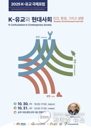 (케이엠뉴스) 충청남도가 주최하고 한국유교문화진흥원이 주관하는 '2025 K-유교 국제포럼'행사가 오는 10월 30일부터 31일까지 이틀에 걸쳐 공주시 아트센터 고마(충청남도 공주시 고마나루길 90)에서 열린다.