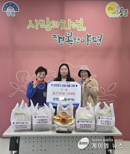 (케이엠뉴스) 양평군 용문면은 지난 22일 용문면 생활개선회가 쌀쌀해진 날씨 속 어려움을 겪고 있는 이웃들을 위해 직접 만든 불고기와 단팥빵 10세트를 기부했다고 밝혔다.