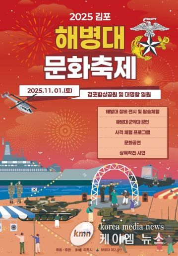 (케이엠뉴스) 김포시는 오는 11월 1일 김포함상공원 및 대명항에서 ‘2025 김포 해병대 문화축제’를 개최한다. 지난해에 이어 올해로 2회를 맞는 김포 해병대 문화축제는 접경지와 군사지역이 다수인 김포의 특색을 살려 문화로 풀어낸 브랜딩의 결과로, 접경지 인식전환에 기여하고 안보관광의 또 다른 가능성을 풀어낸다는데 큰 의의가 있다.