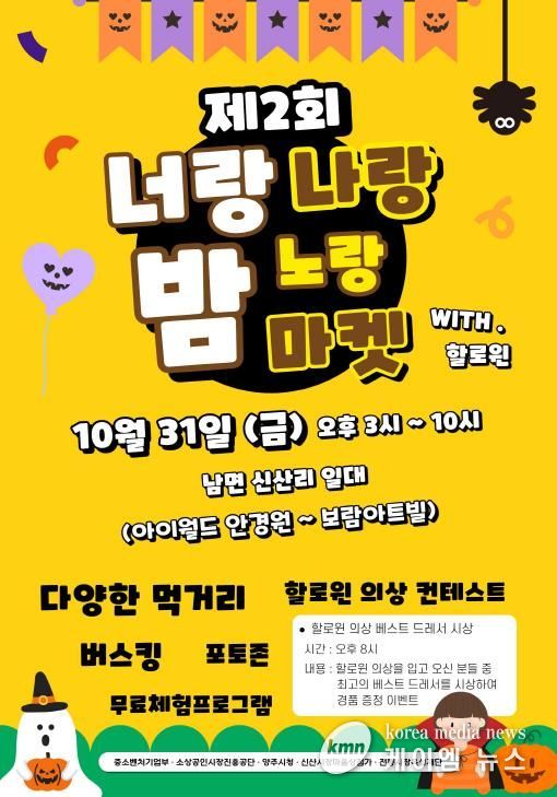 (케이엠뉴스) 양주시가 신산시장마을번영회와 공동 주관으로, 오는 31일 남면 상가거리(개나리길 74 일원)에서 “제3회 너랑나랑노랑 밤 마켓” 축제를 개최한다.