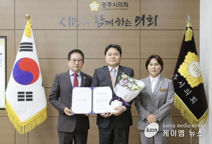 (케이엠뉴스) 광주시의회는 지난 20일, 광주시의회 10월 칭찬공무원으로 광주시청 스마트교통과 심재진 팀장을 선정하여 의장실에서 증서를 수여했다.
