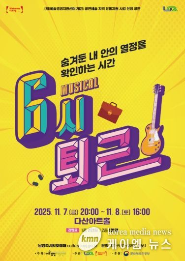 (케이엠뉴스) 남양주시는 오는 11월 7일부터 8일까지 다산아트홀에서 뮤지컬‘6시 퇴근’을 공연한다고 밝혔다.